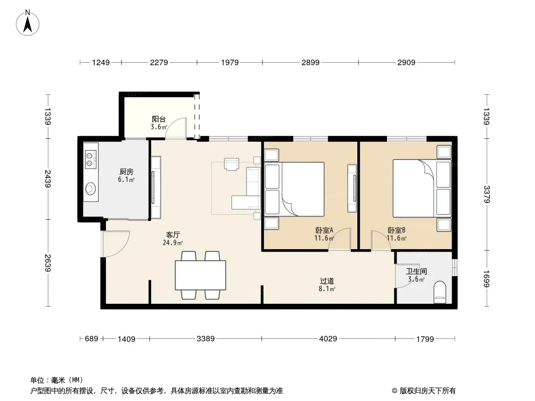 户型齐全,主打明卫,客厅朝南,双卧朝南,主卧朝南二居