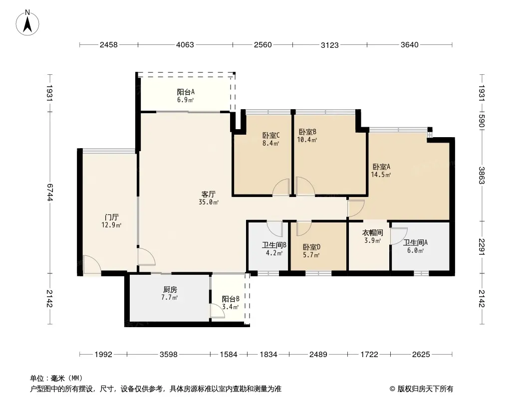 户型齐全,主打户型方正,明厨,明卫,客厅朝南,双阳台四居