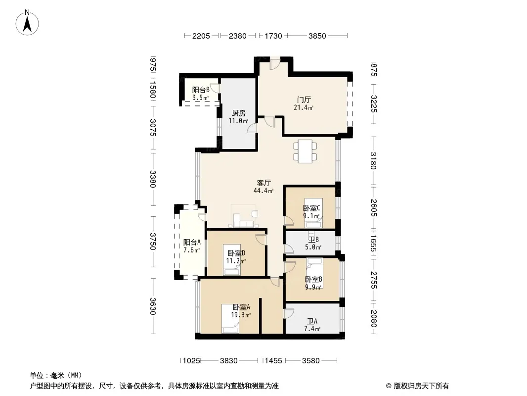 户型齐全,主打户型方正,明厨,明卫,客厅朝南,双阳台四居