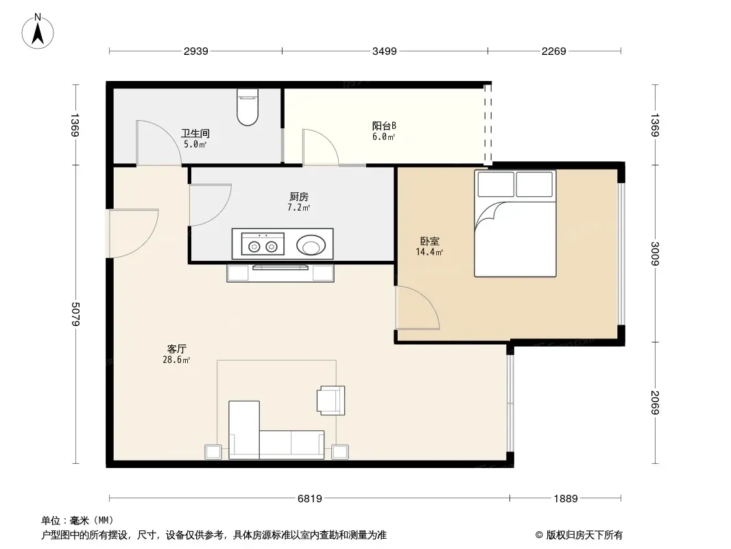 户型齐全,主打客厅朝南三居