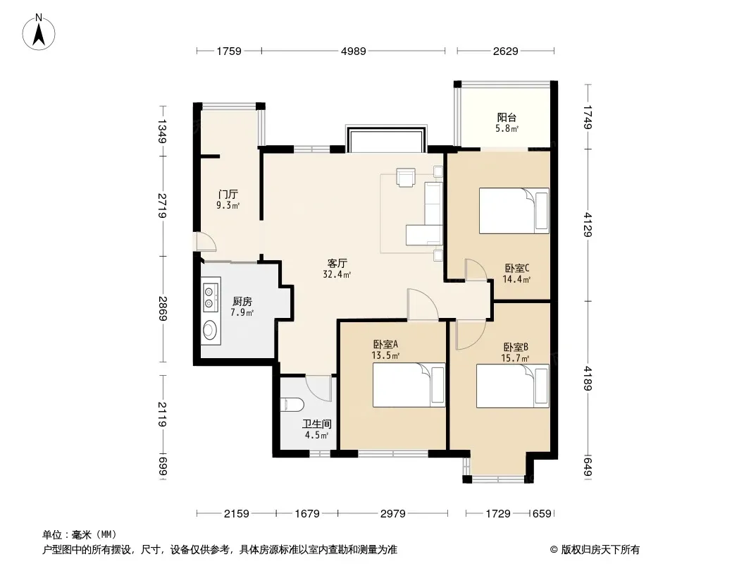 户型齐全,主打客厅朝南三居