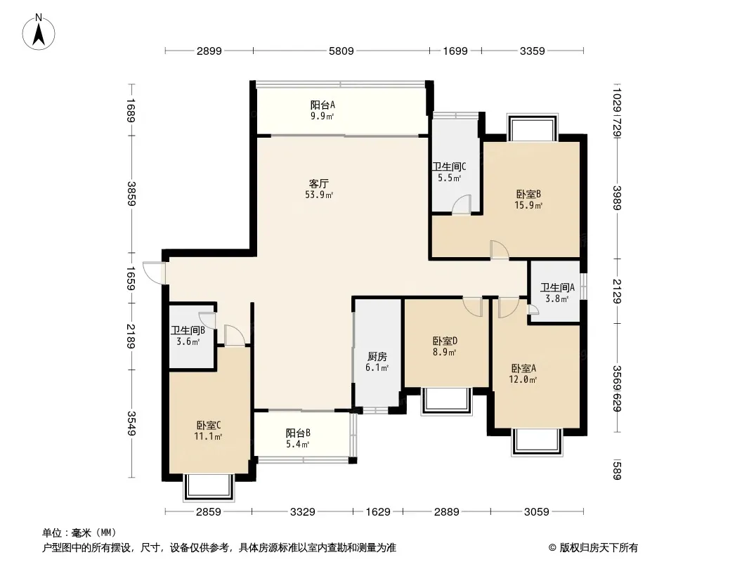 远洋万和公馆 4室2厅 东南