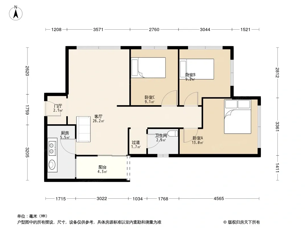 万科金色海蓉二期 3室2厅 南