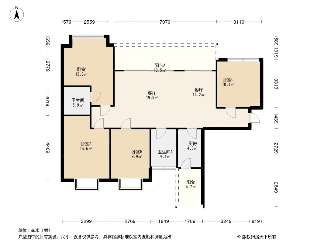 户型齐全,主打户型方正,动静分离四居