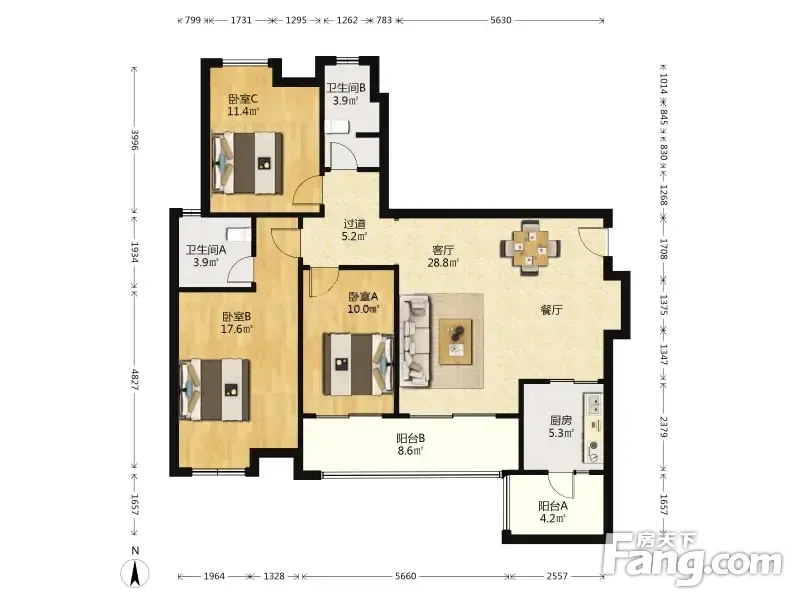 奥园公园府邸 3室2厅 南