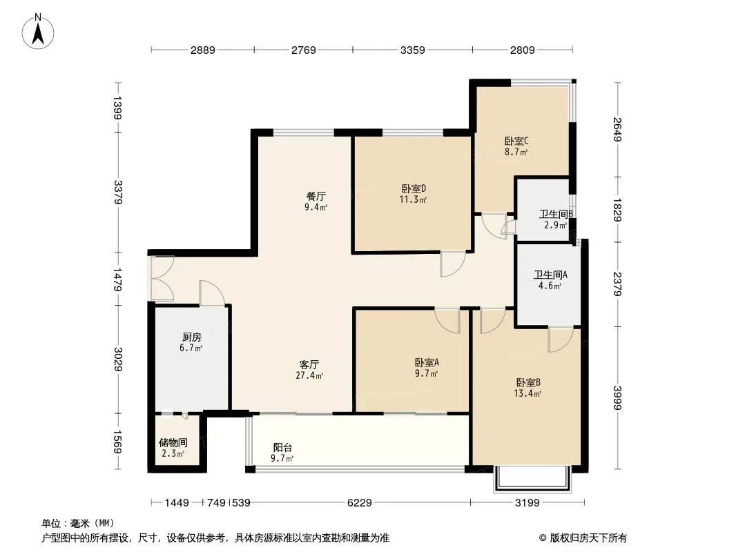 美泉悦府 4室2厅 东南 西北