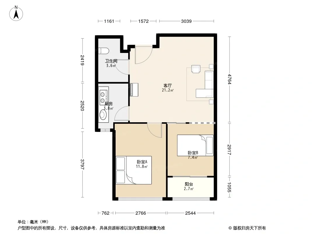 金地天府城公寓 2室2厅 北