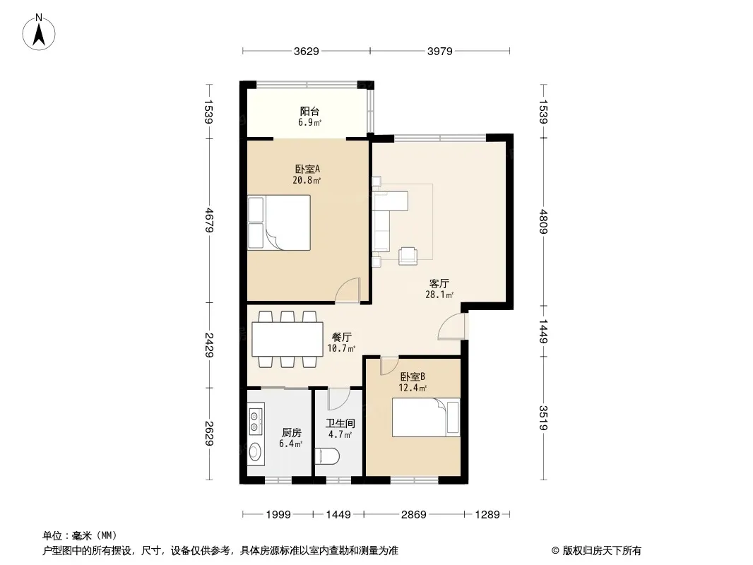 户型齐全,主打户型方正,明厨,客厅朝南二居