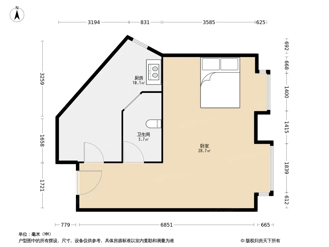 中迪创世纪1室1厅南北