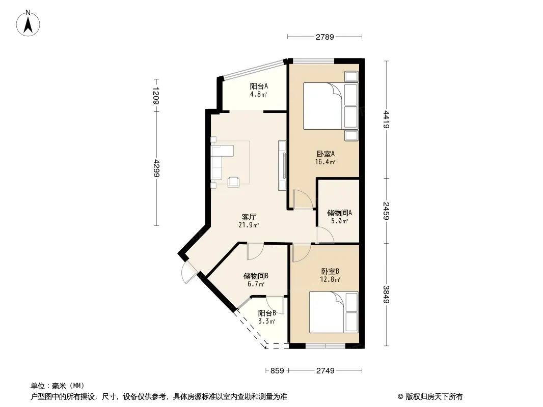 多弗国际中心2室1厅东北