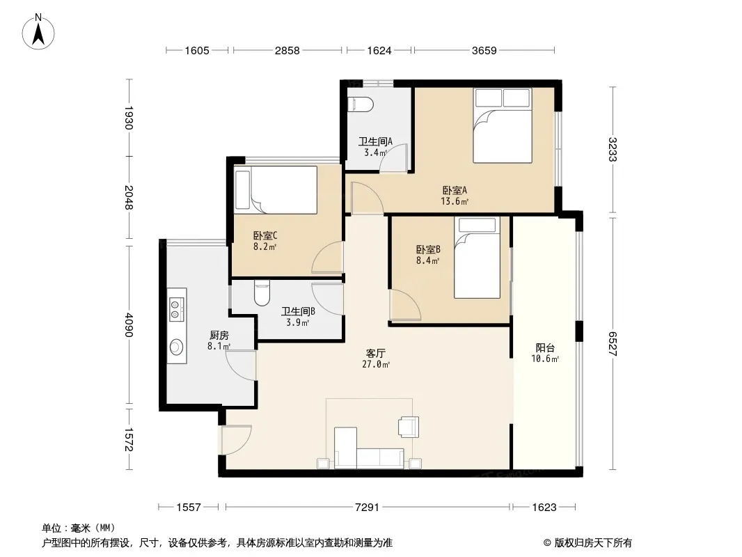 户型齐全,主打明卫,双阳台,双卧朝南三居