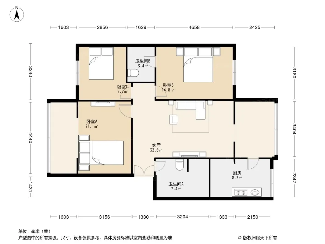 中华园锦苑3室1厅南