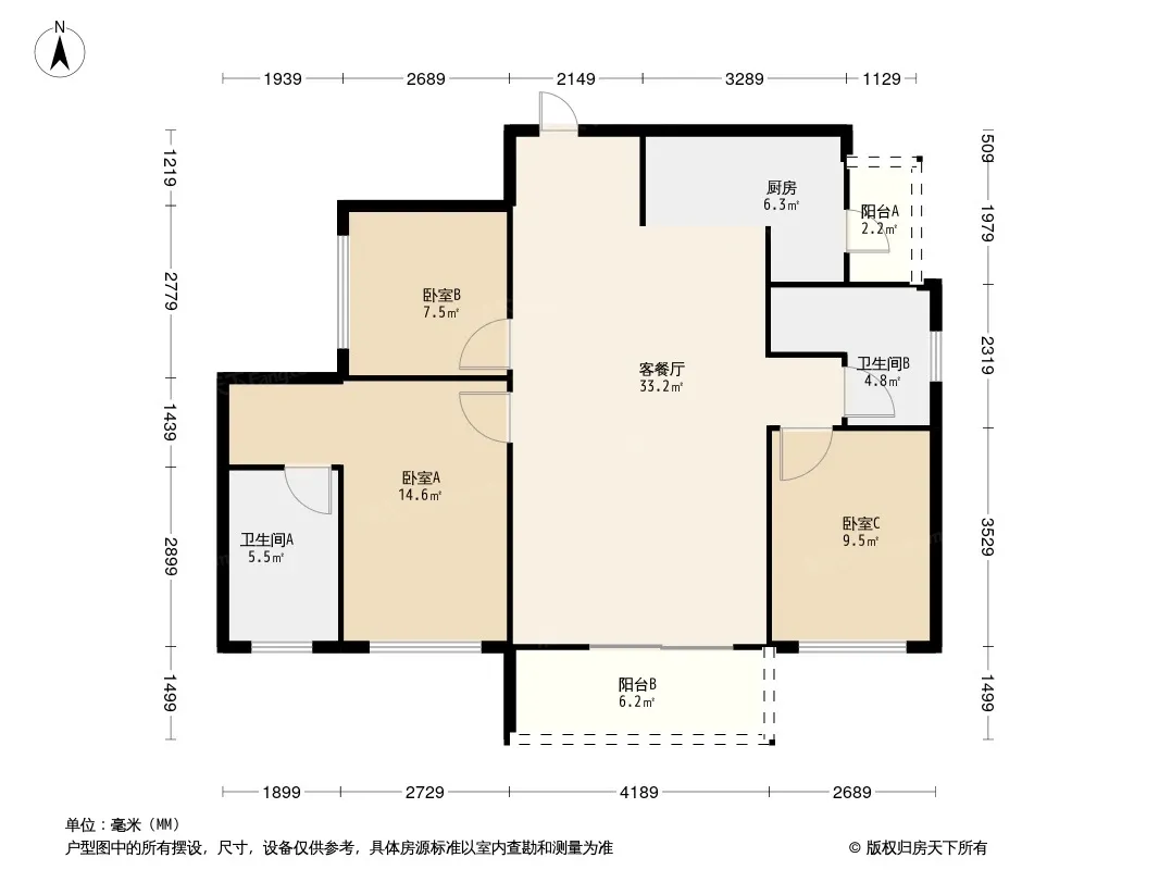 万科璟南堂 3室2厅 南
