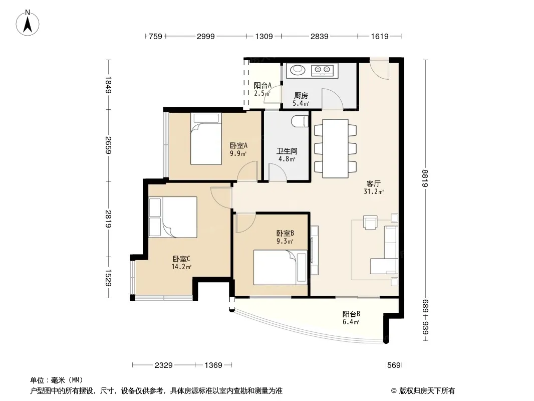 天投北鑫苑 3室2厅 南