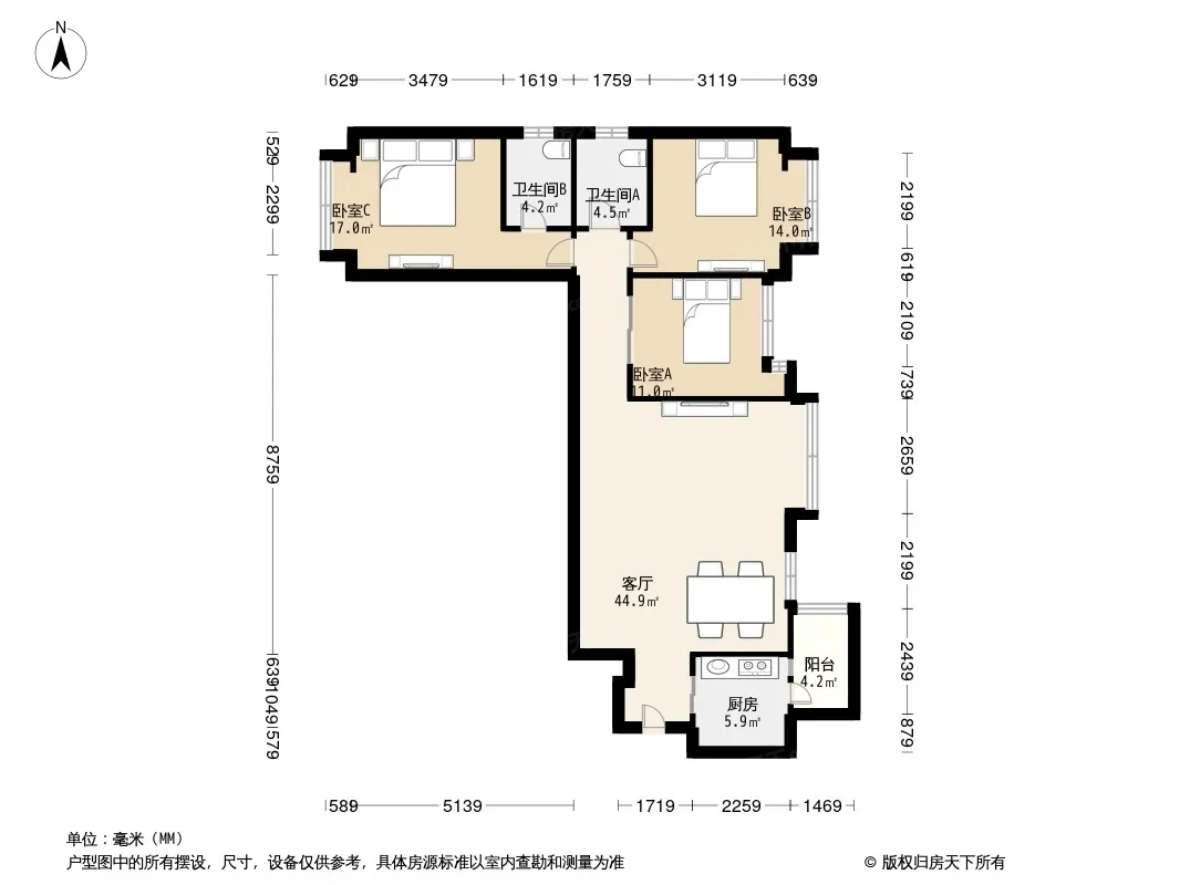 户型齐全,主打户型方正,明卫,客厅朝南三居