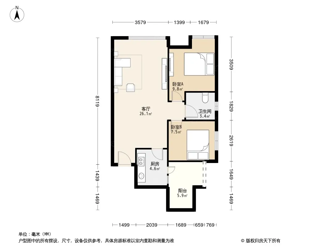 户型齐全,主打户型方正,明卫,客厅朝南三居