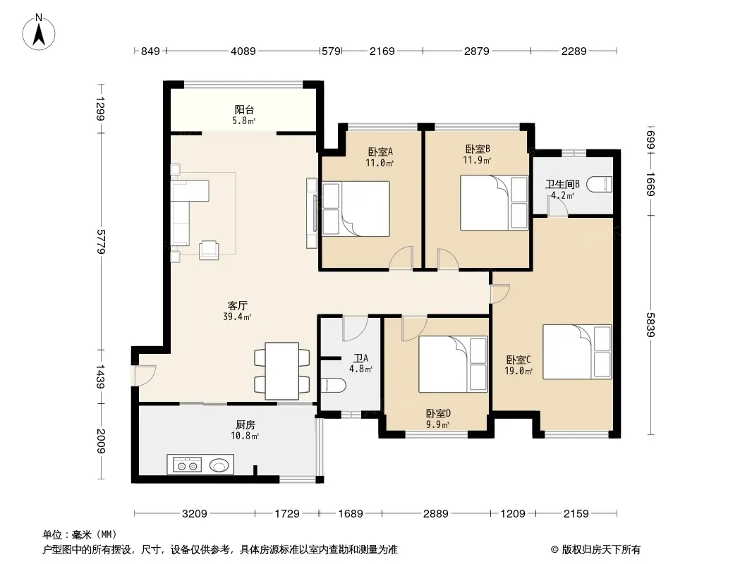 天悦龙栖台 4室1厅 西北