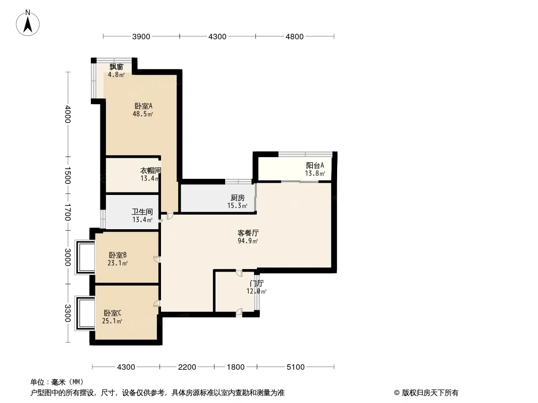 天悦龙栖台 3室2厅 东南