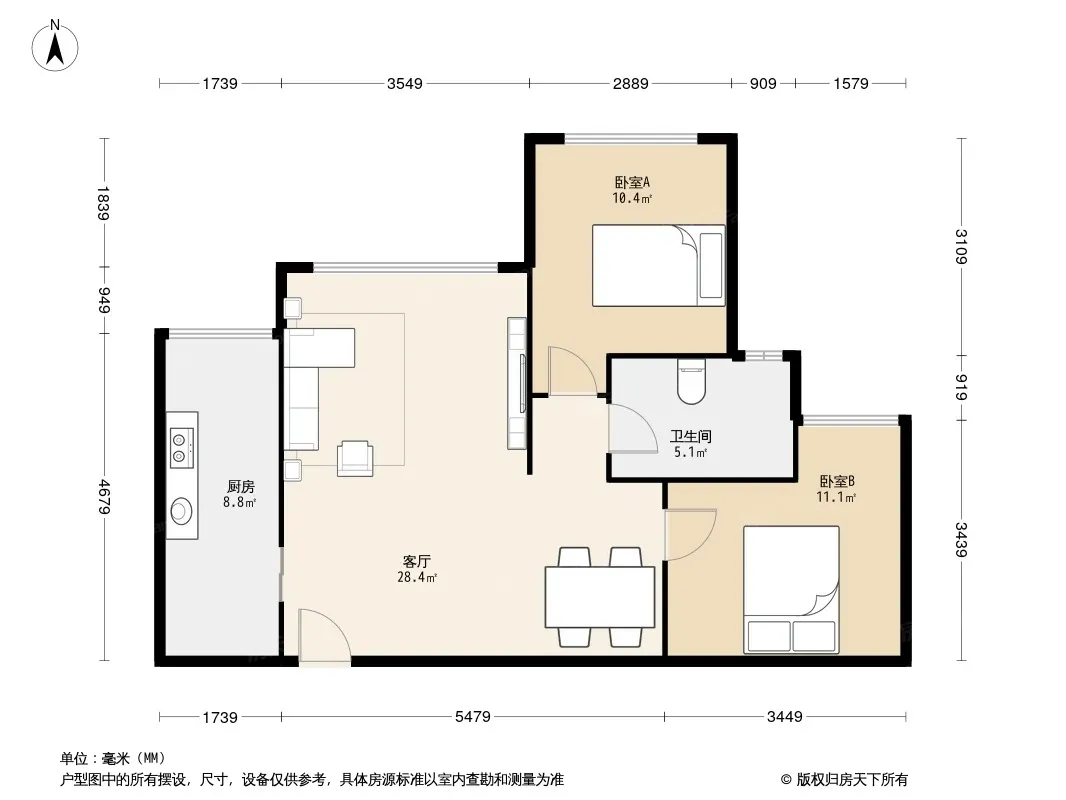 天悦龙栖台 2室2厅 南