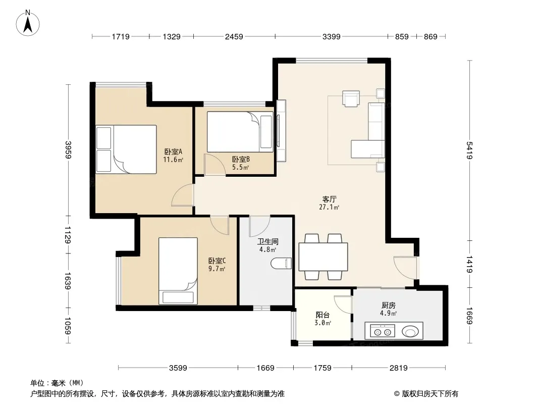 天悦龙栖台 3室2厅 西北