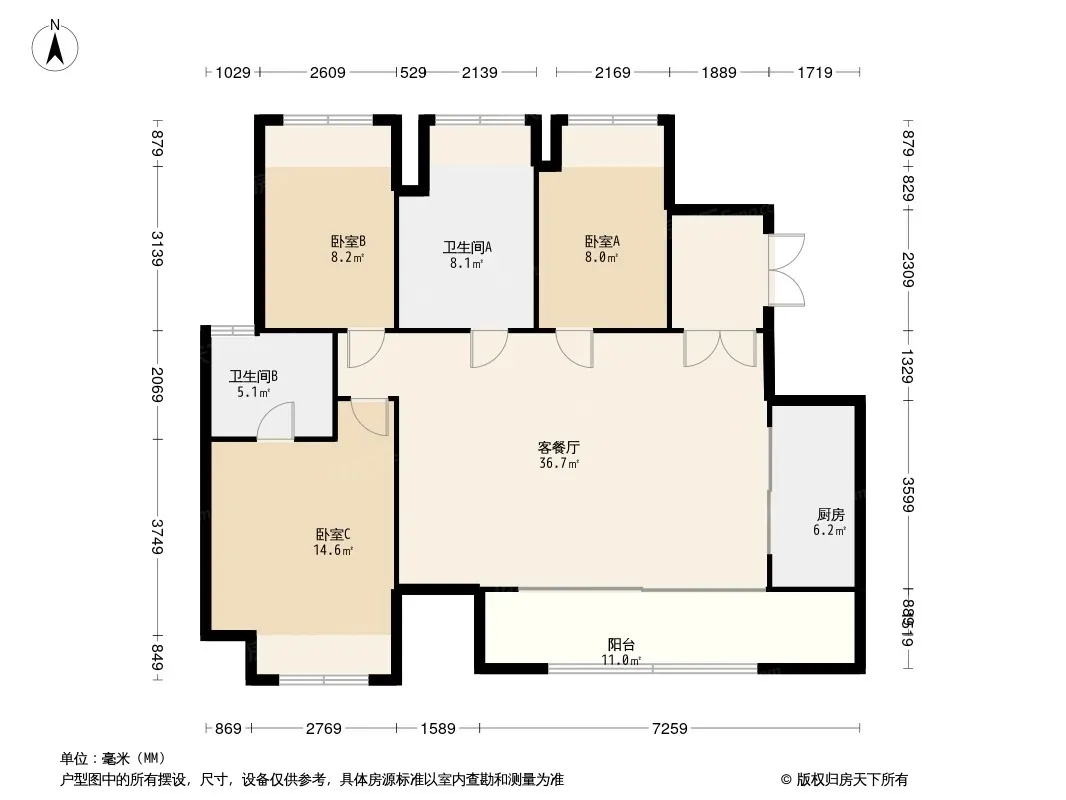 首创禧瑞锦江 3室2厅 南