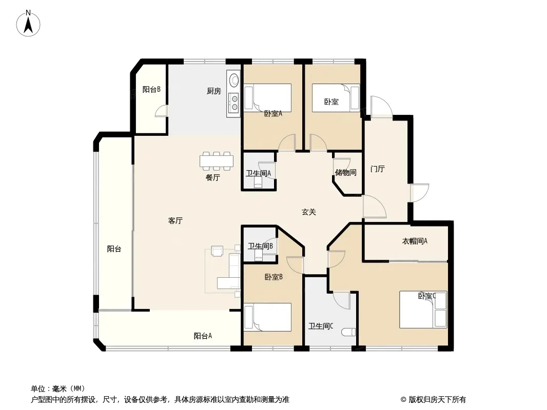 户型齐全,主打全明格局,中西双厨四居