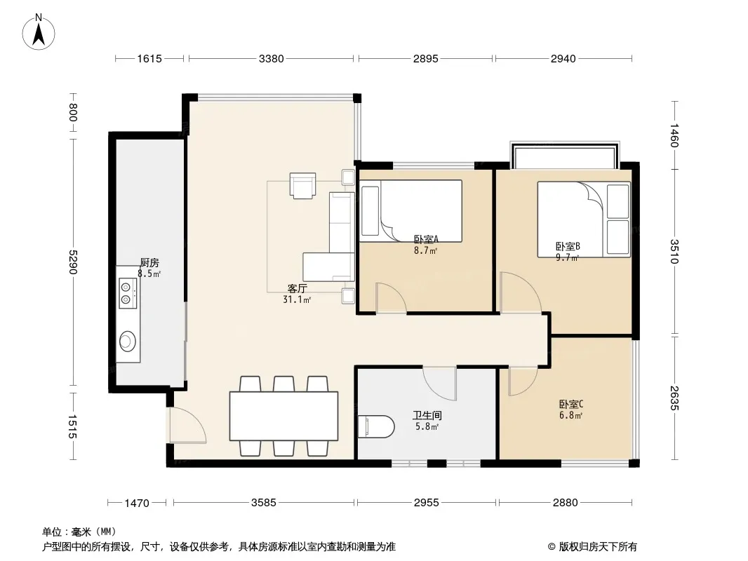 *获取完整户型报告,同时会有免费语音讲解服务
