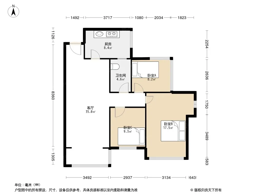 世茂城三期 3室2厅 东北
