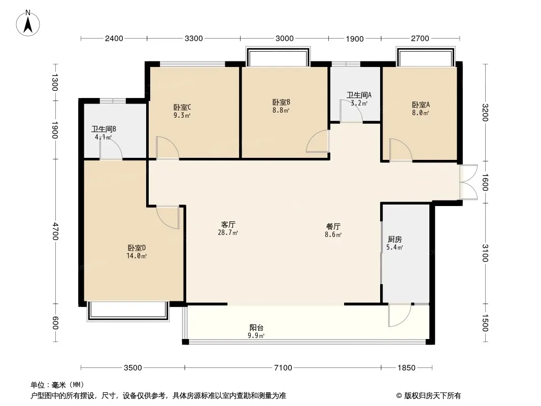 万景蓉元 4室2厅 东南