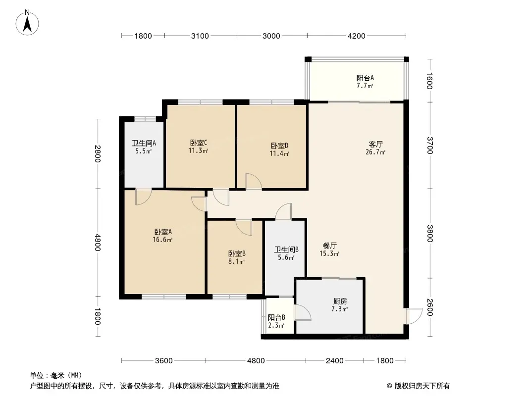 保利时代云门 4室2厅 南