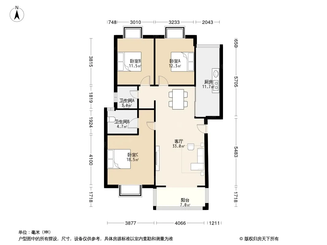 户型齐全,主打明厨,明卫三居
