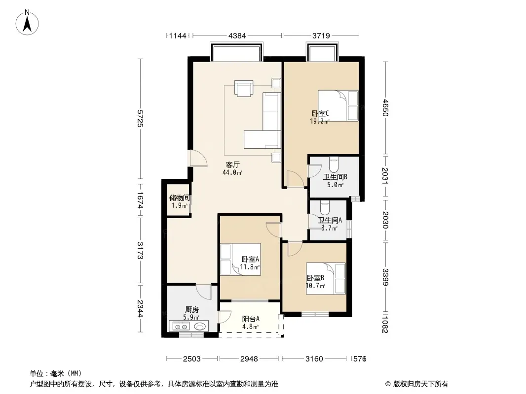 户型齐全,主打户型方正,明卫,客厅朝南,双卧朝南三居