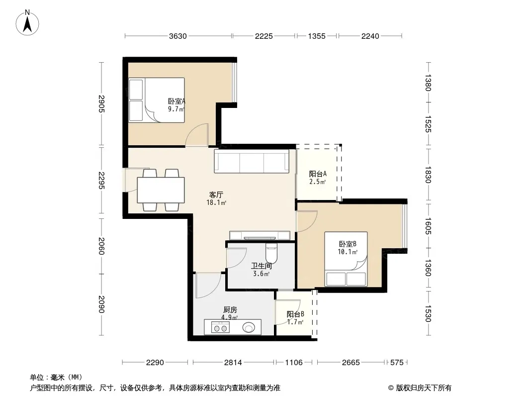 户型齐全,主打双阳台,双卧朝南,主卧朝南二居