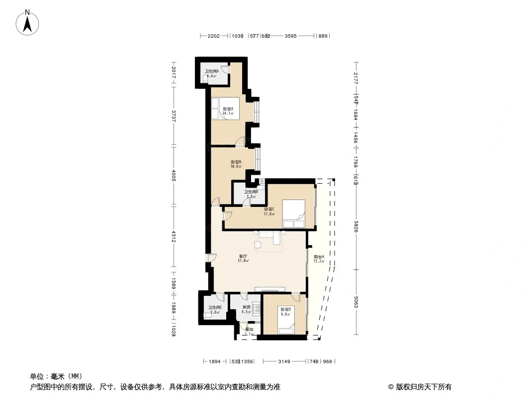 户型齐全,主打明卫,双阳台四居
