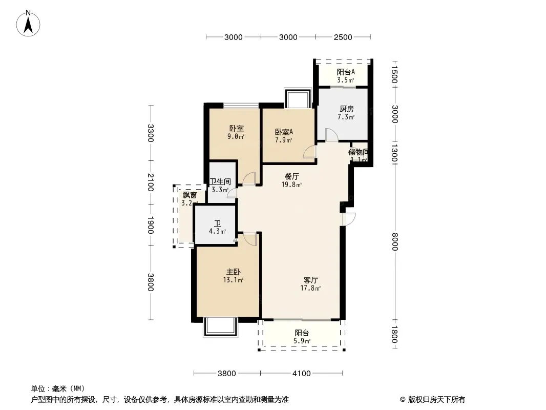 星岛星时区 3室1厅 南