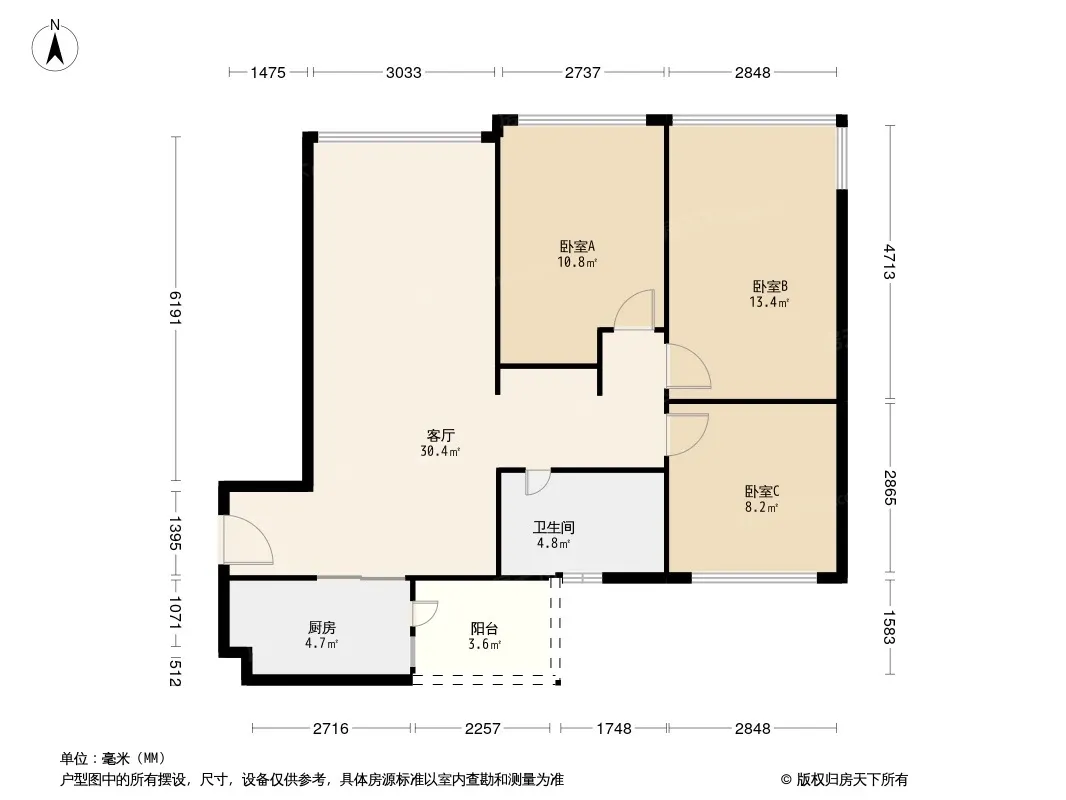 西宸原著御景 3室2厅 南