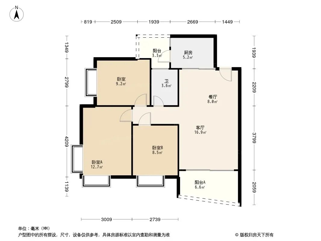 户型齐全,主打全明格局,户型方正三居