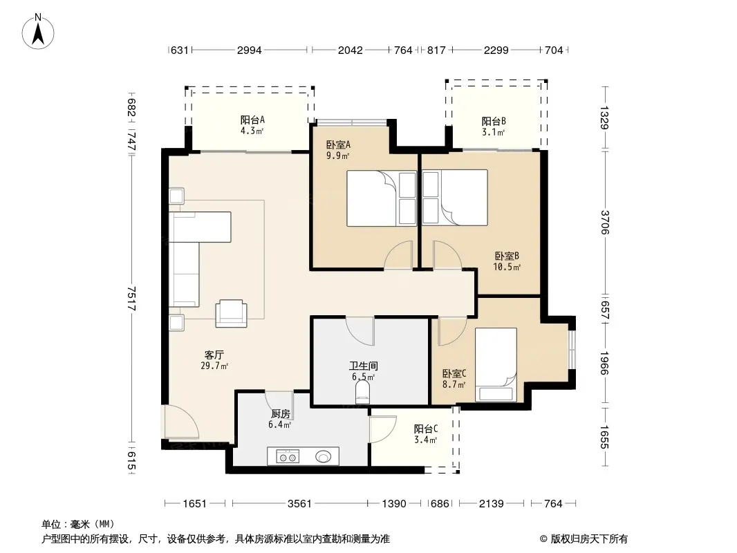 *获取完整户型报告,同时会有免费语音讲解服务