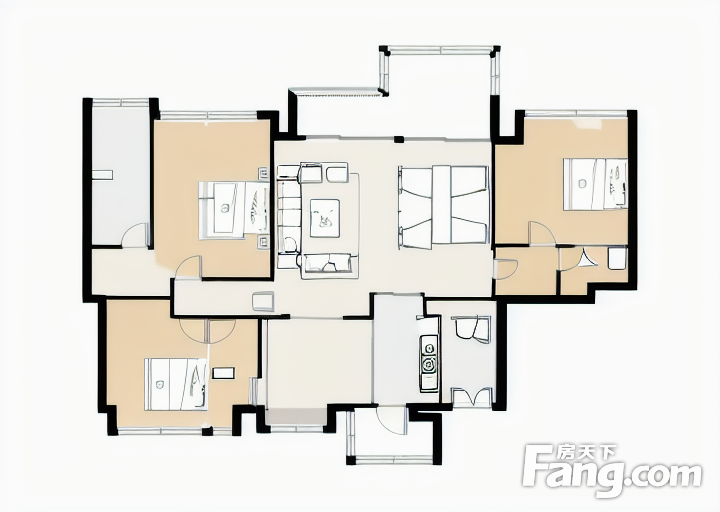 户型齐全,主打明厨,客厅朝南,双阳台四居