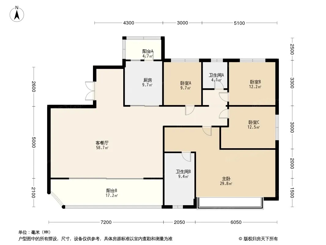 户型齐全,主打全明格局,户型方正四居