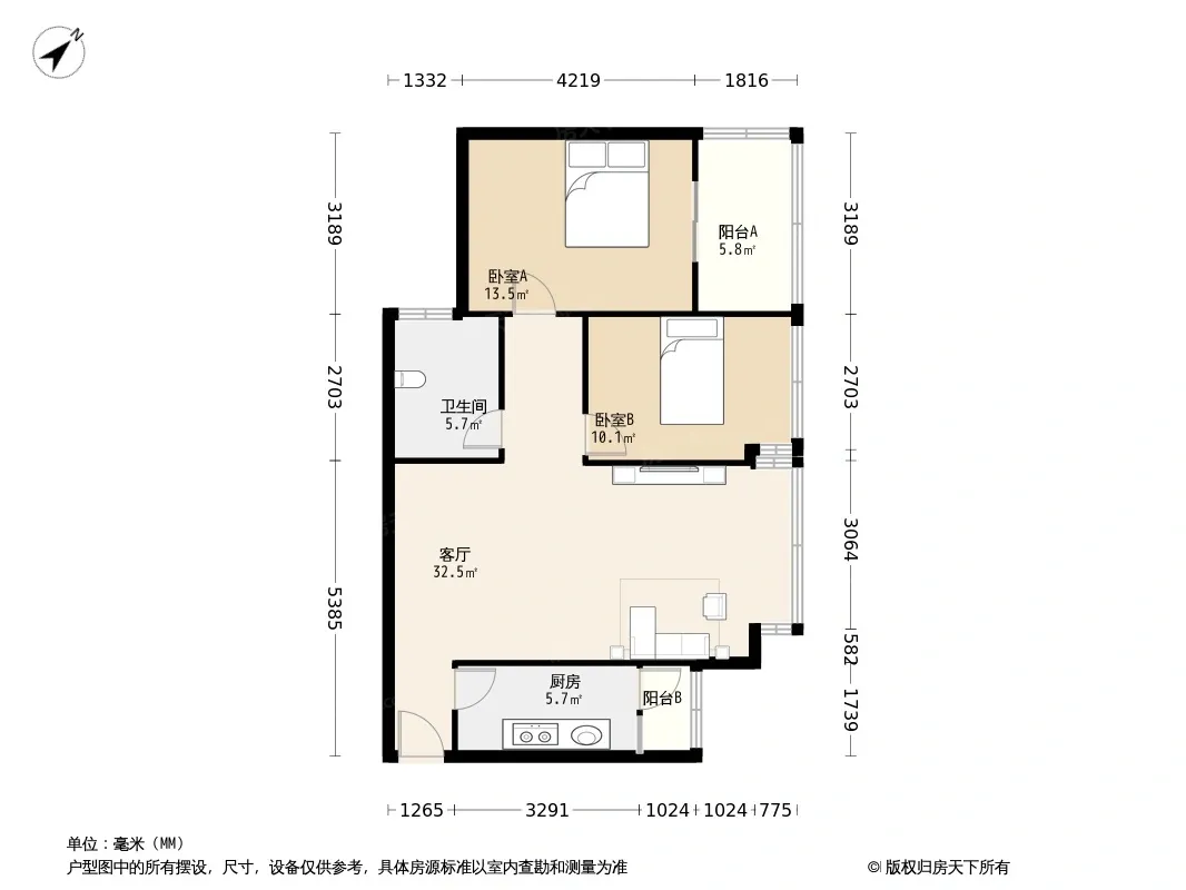 户型齐全,主打明卫,客厅朝南,双阳台二居