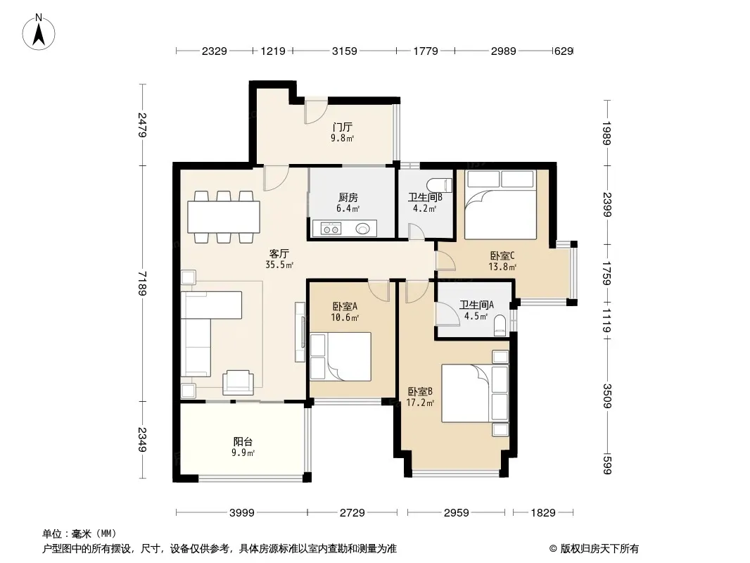 户型齐全,主打明卫三居