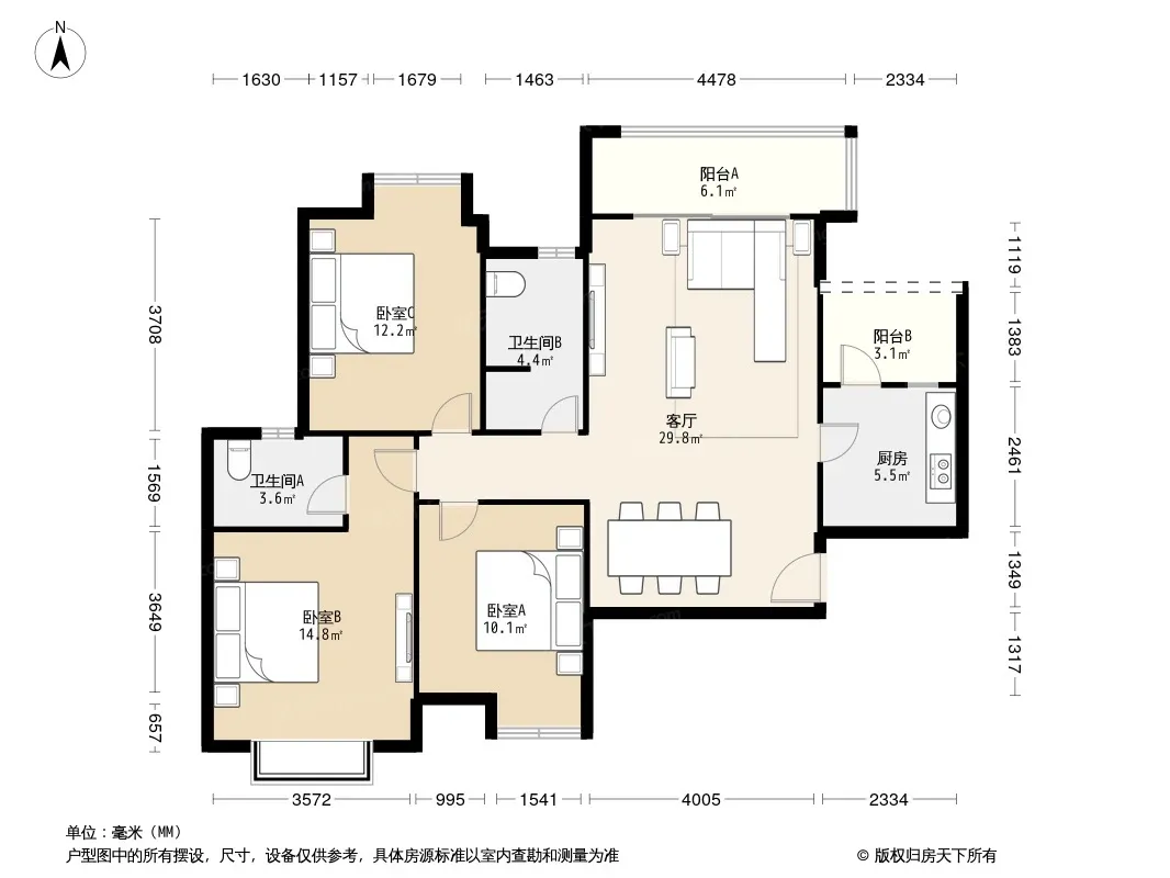 户型齐全,主打户型方正,明卫,双阳台,主卧朝南三居