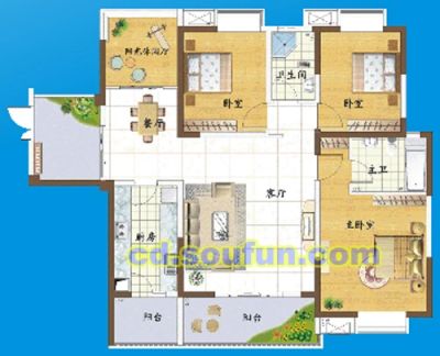 劲力蓝色理想 4室2厅 西南