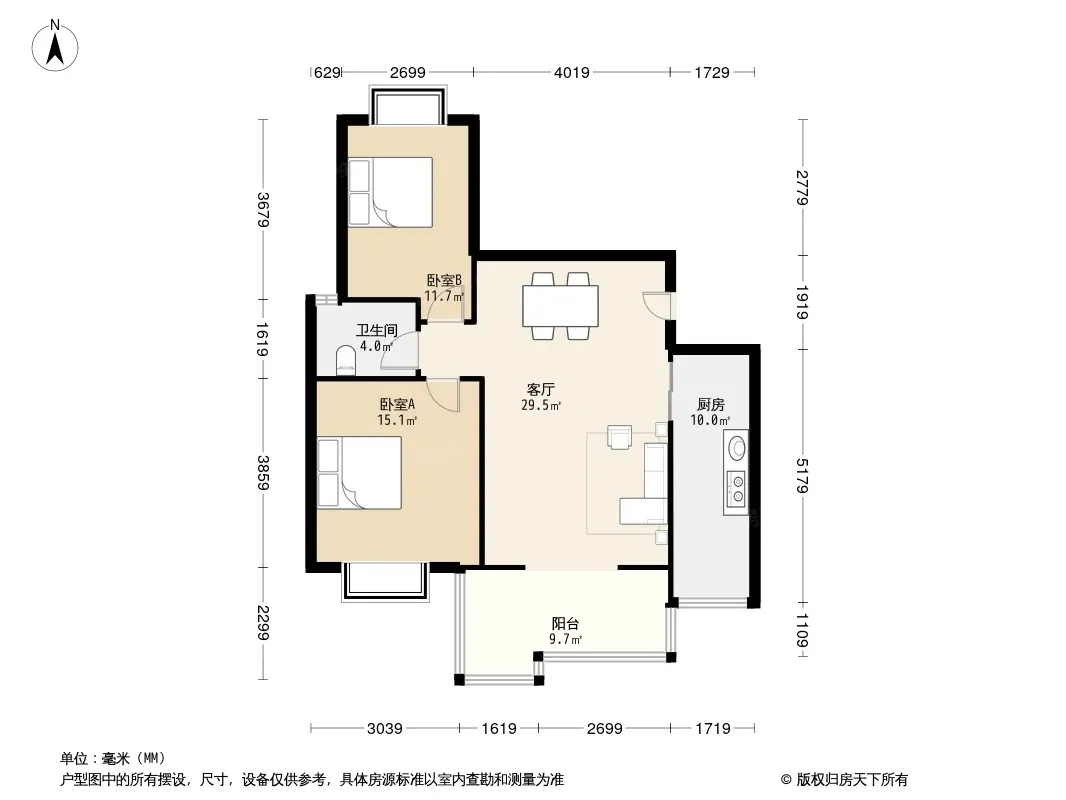 户型齐全,主打明卫,客厅朝南二居