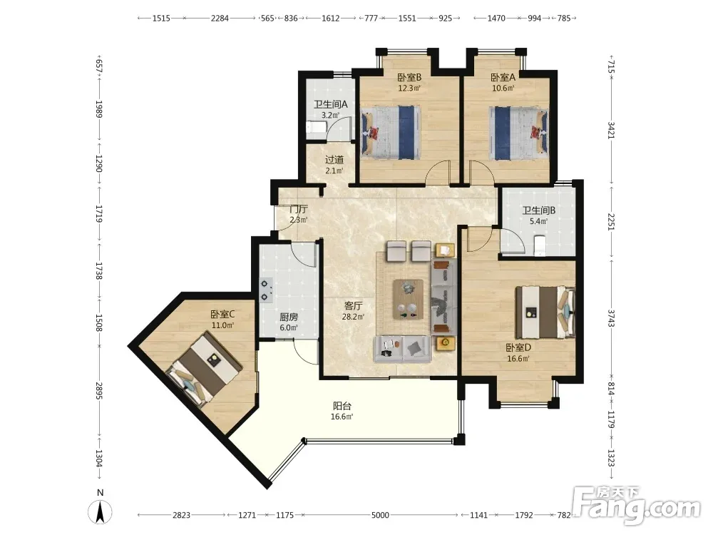 八里阳光 4室1厅 东南