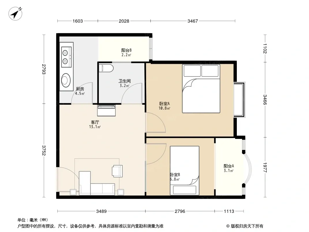 天邑华庭2室1厅东南