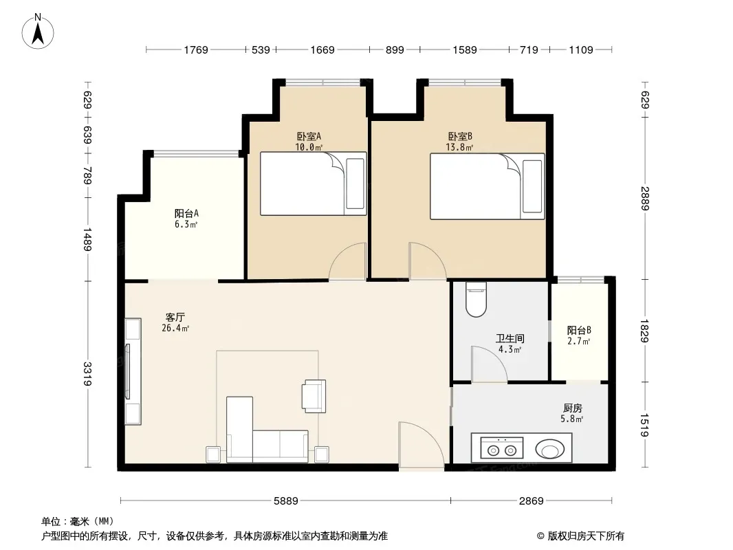 户型齐全,主打户型方正,双阳台,主卧朝南二居