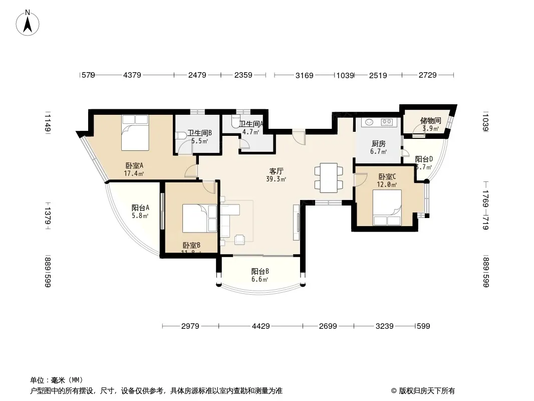 御源大湖区 4室1厅 南