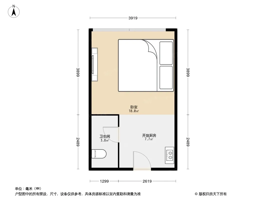 户型齐全,主打明厨,主卧朝南一居